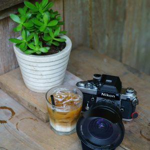 A Man Photographing With A Vintage Camera Indoors, Creating Warm And Artistic Vibes.