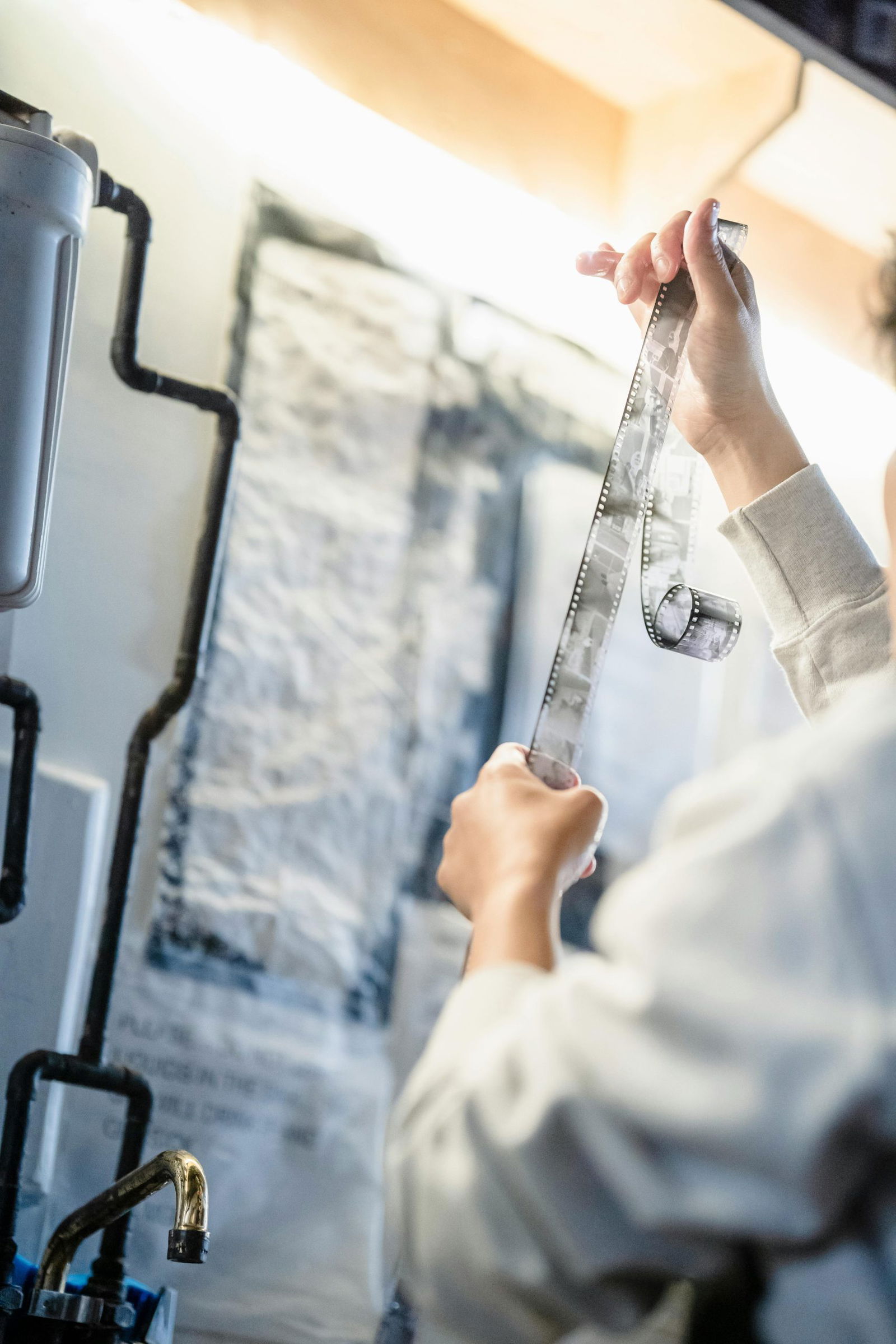 Close Up Of Hands Developing Film In A Modern Darkroom.