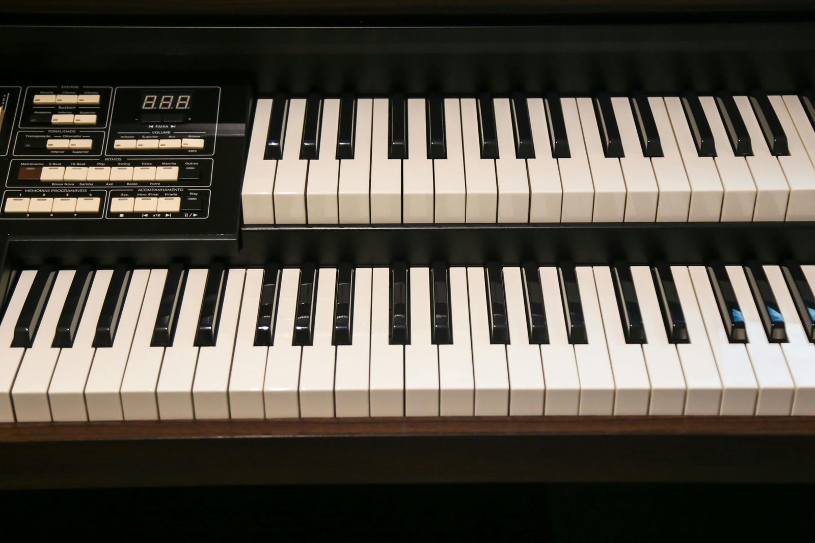 / High Quality Image Of A Vintage Electric Organ’s Keyboard And Control Panel, Perfect For Music Themed Projects.