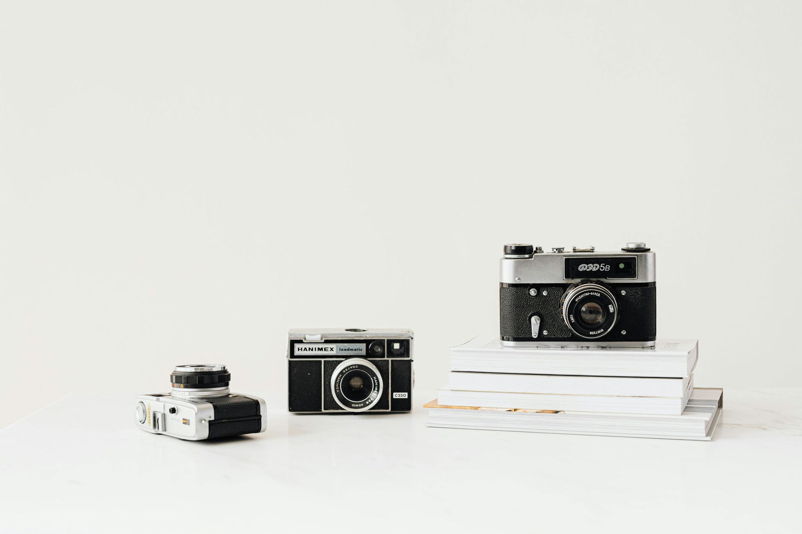 Three Vintage Cameras Displayed On A White Background, Emphasizing Nostalgia And Retro Design.