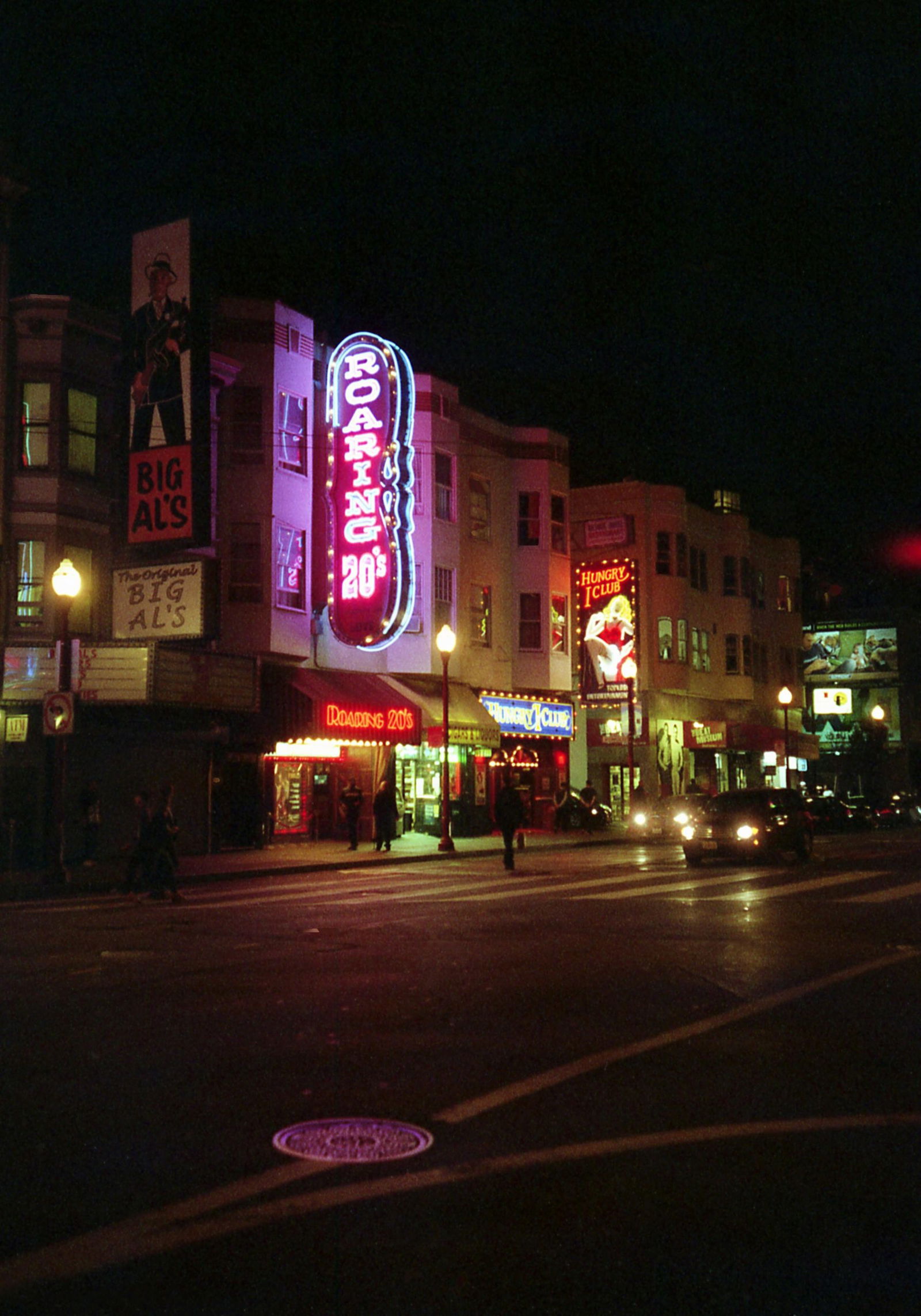 / Vibrant Neon Signs Illuminate A Street Scene In Downtown San Francisco At Night.