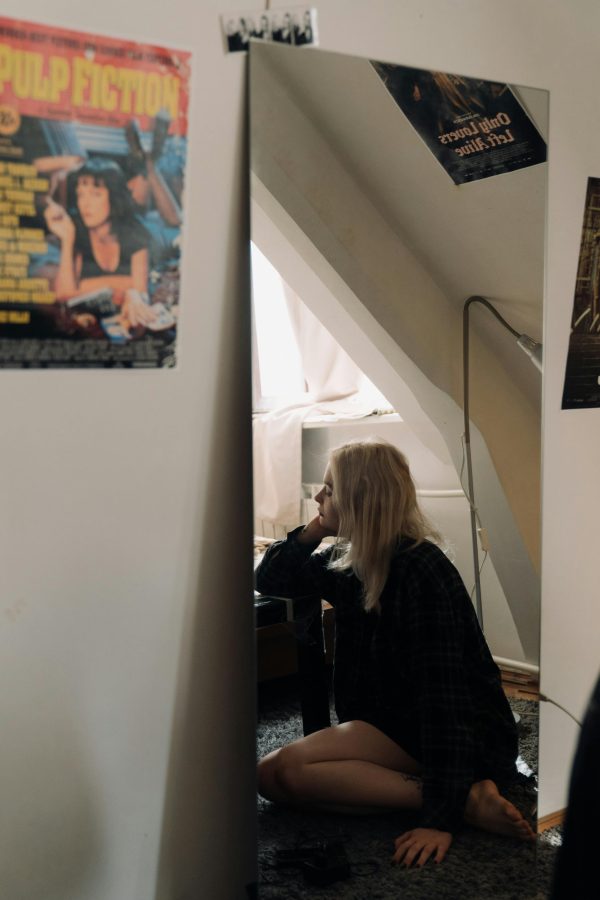 Woman In Reflection Contemplating Life Beside A Window.