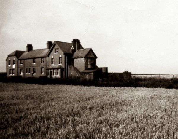 Black And White Vintage Photo Of An Old Farmhouse In Weybourne, Surrounded By Fields.