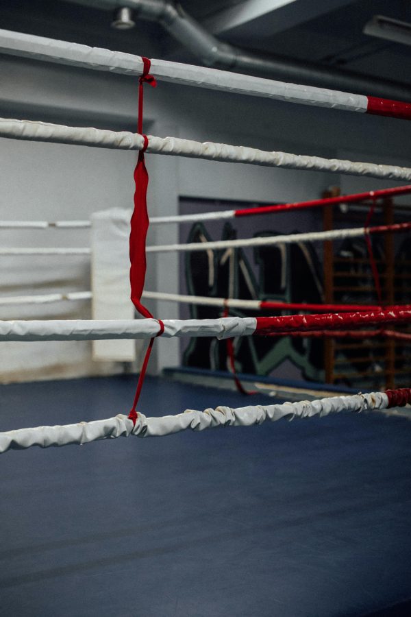 A Close Up View Of An Unoccupied Boxing Ring Indoors Showcasing Training Ambiance.