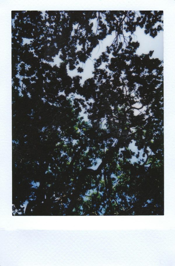Artistic Silhouette Of Tree Branches Creating A Natural Pattern Against The Sky, Captured In Instant Film Style.