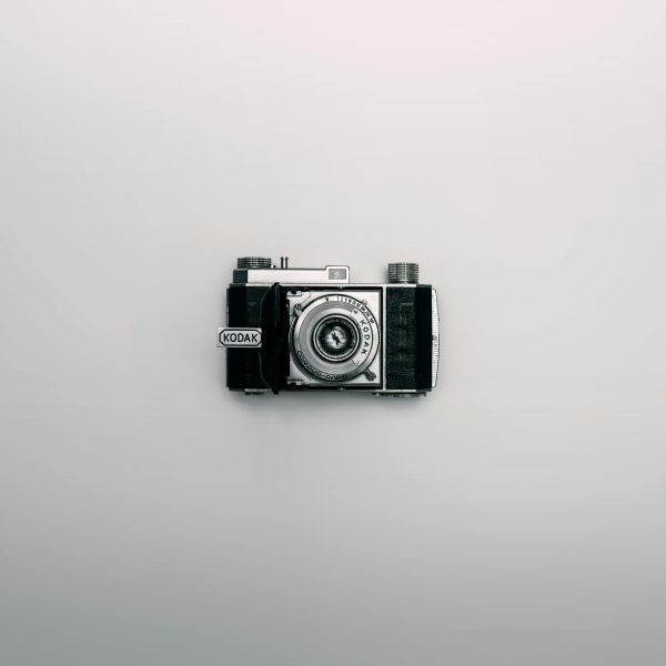 A Classic Kodak Camera Displayed Centrally On A Minimalist White Background.