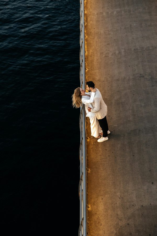 A Couple Embraces Romantically On A Sunset Lit Seaside Promenade In Türkiye, Offering A Serene And Intimate Moment.